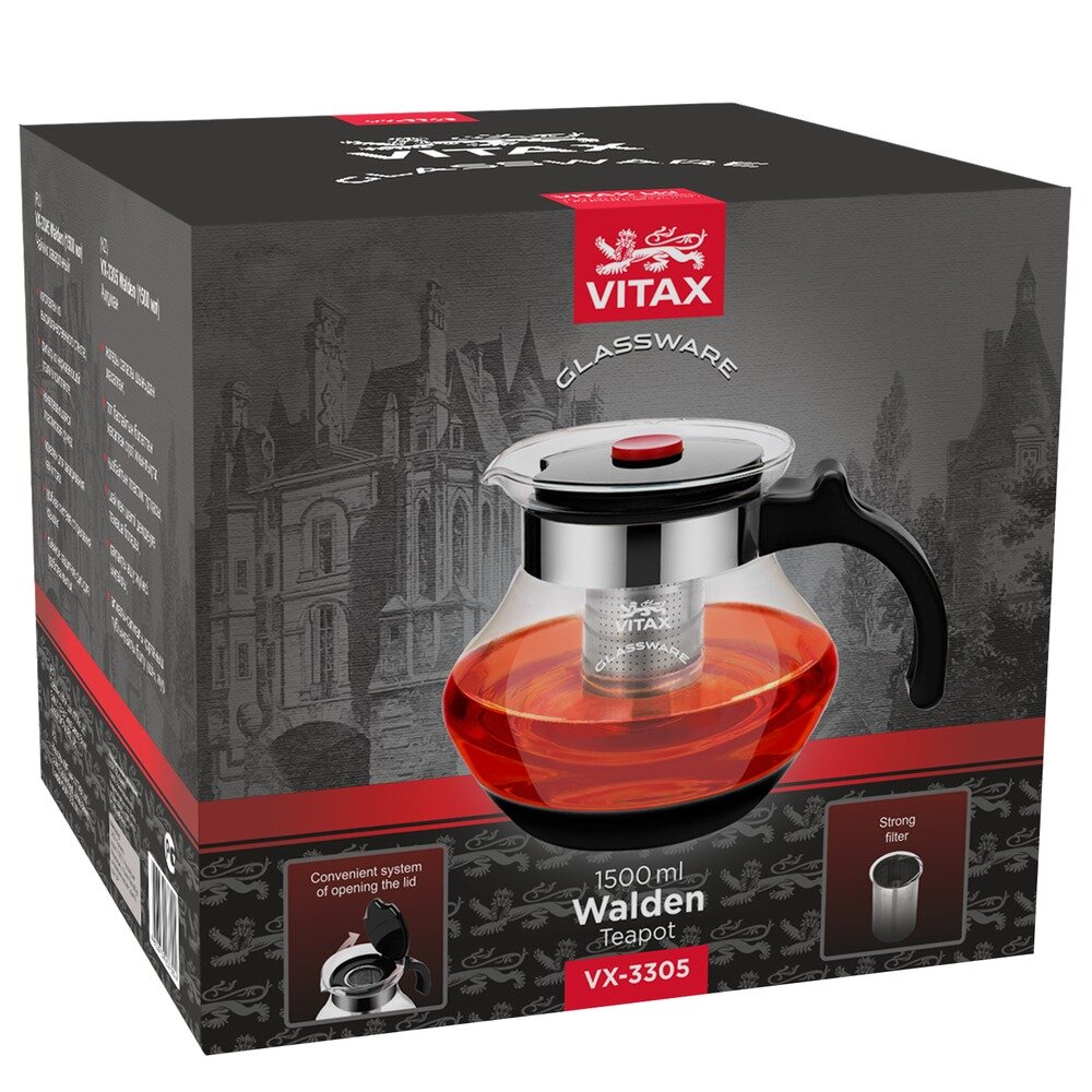 чайник заварочный VITAX Walden 1500мл термостекло пластик нерж.сталь (VX-3305)