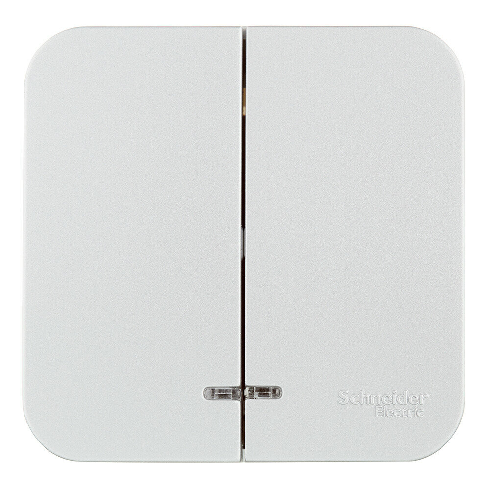 SE Blanca Алюминий Выключатель 2-клавишный накладного монтажа с подсветкой с изолирующей пластиной 10А 250B Двухклавишный выключатель серии BLANCA серого цвета с подсветкой, обладает современным и стильным дизайном, предназначен для управления и организации осветительной сети помещений. Подходит для жилых помещений, коммерческой недвижимости и объектов инфраструктуры. LED подсветка.