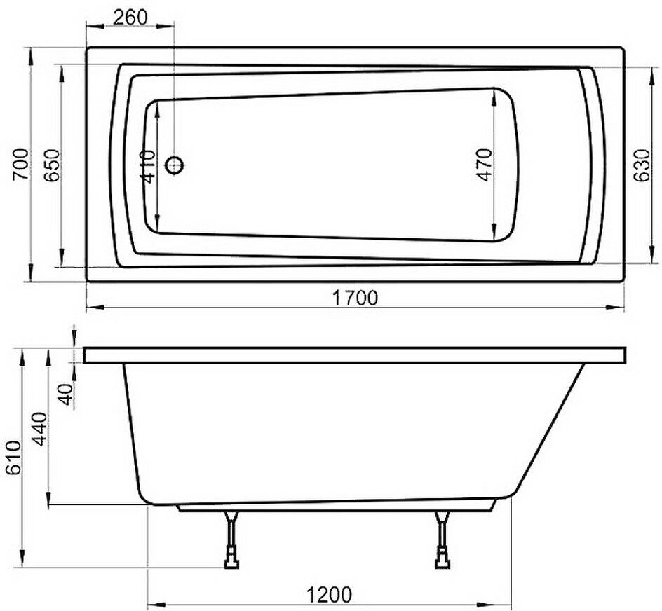 ванна акриловая Ravak Domino Plus 170x70 см (C632R00000) (размер: 170х70х44)