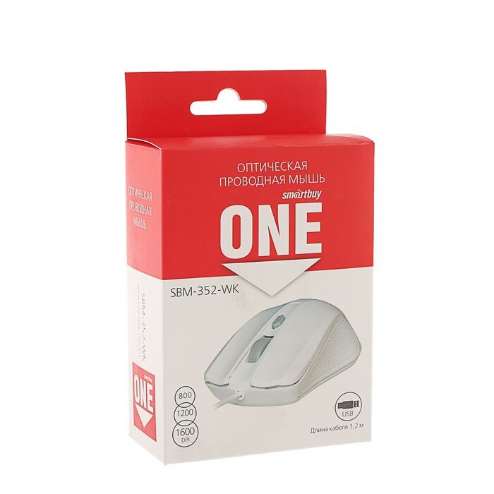 мышь USB SMARTBUY ONE 352 проводная белая (SBM-352-WK)