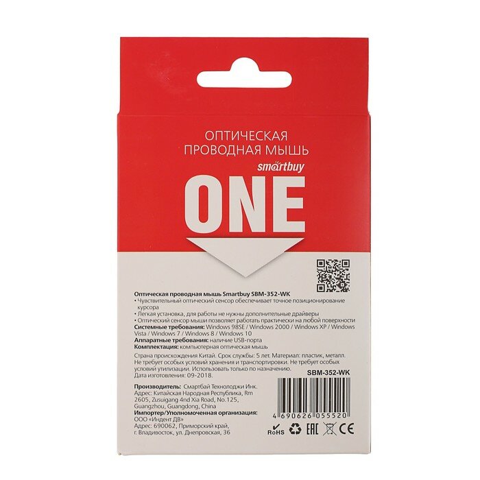 Проводная мышь симметричной формы ''Smartbuy One 352'' одинаково удобна как правшам, так и левшам. Она оснащена оптикой с изменяемым разрешением. Классическое расположение кнопок "2+1 и скроллер" - совместимо с большинством современных приложений и игр. Переключение между разными режимами DPI происходит при помощи всего одной кнопки, так что Вы сможете быстро менять чувствительность сенсора для работы в разных программах.