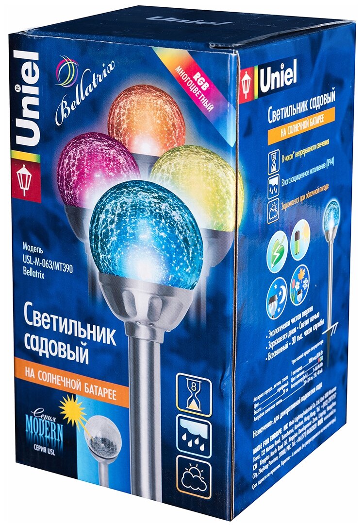 На сегодняшний день товар «светильник садовый на солнечной батарее UNIEL Bellatrix 5Вт IP44 серебро (USL-M-063/MT390) (размер: 12х10х20,5)» можно купить с кешбеком в 1 магазине: МаксидоМ