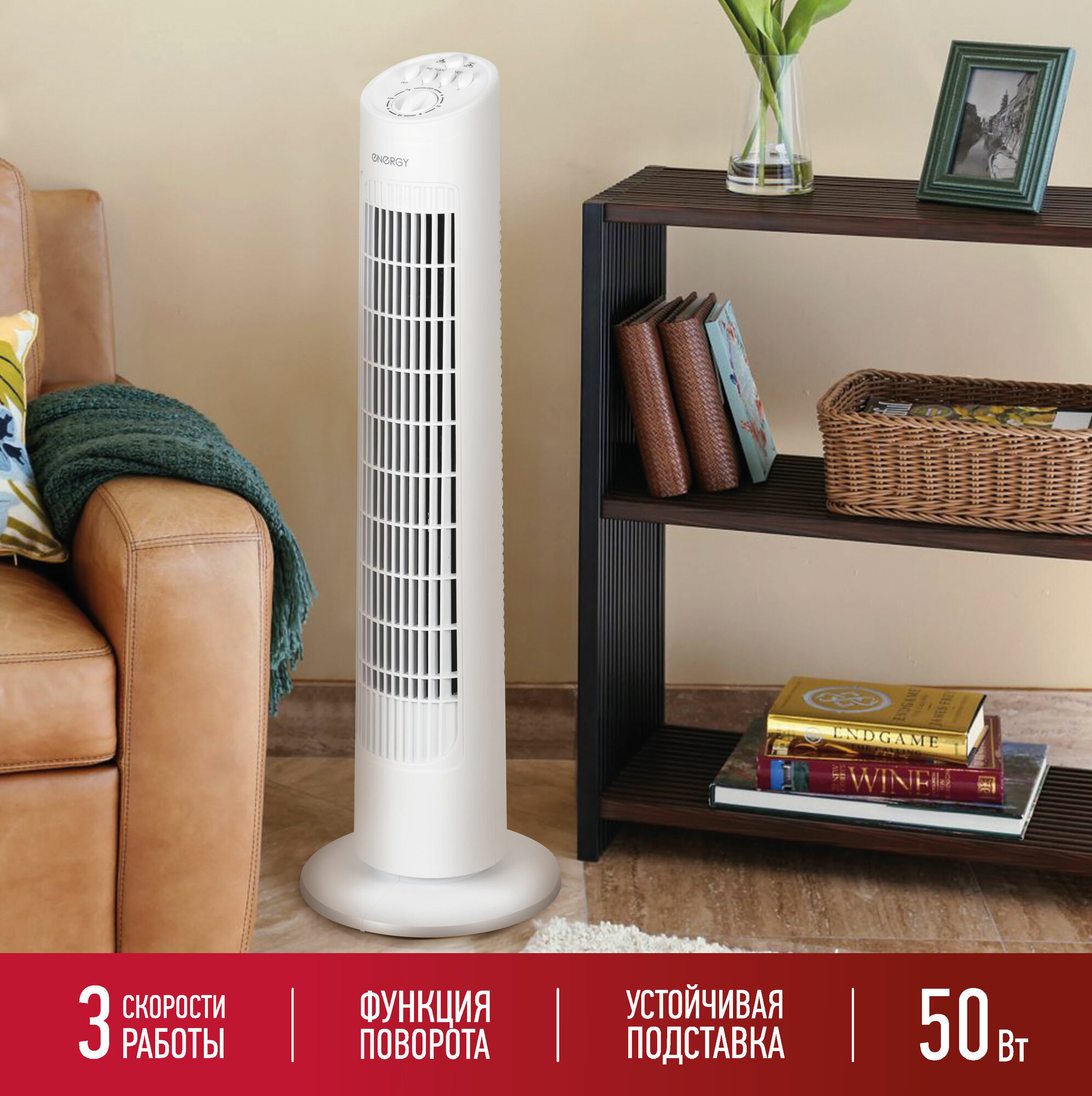 вентилятор-колонна напольный ENERGY TOWER EN-1622 50Вт 3 режима белый