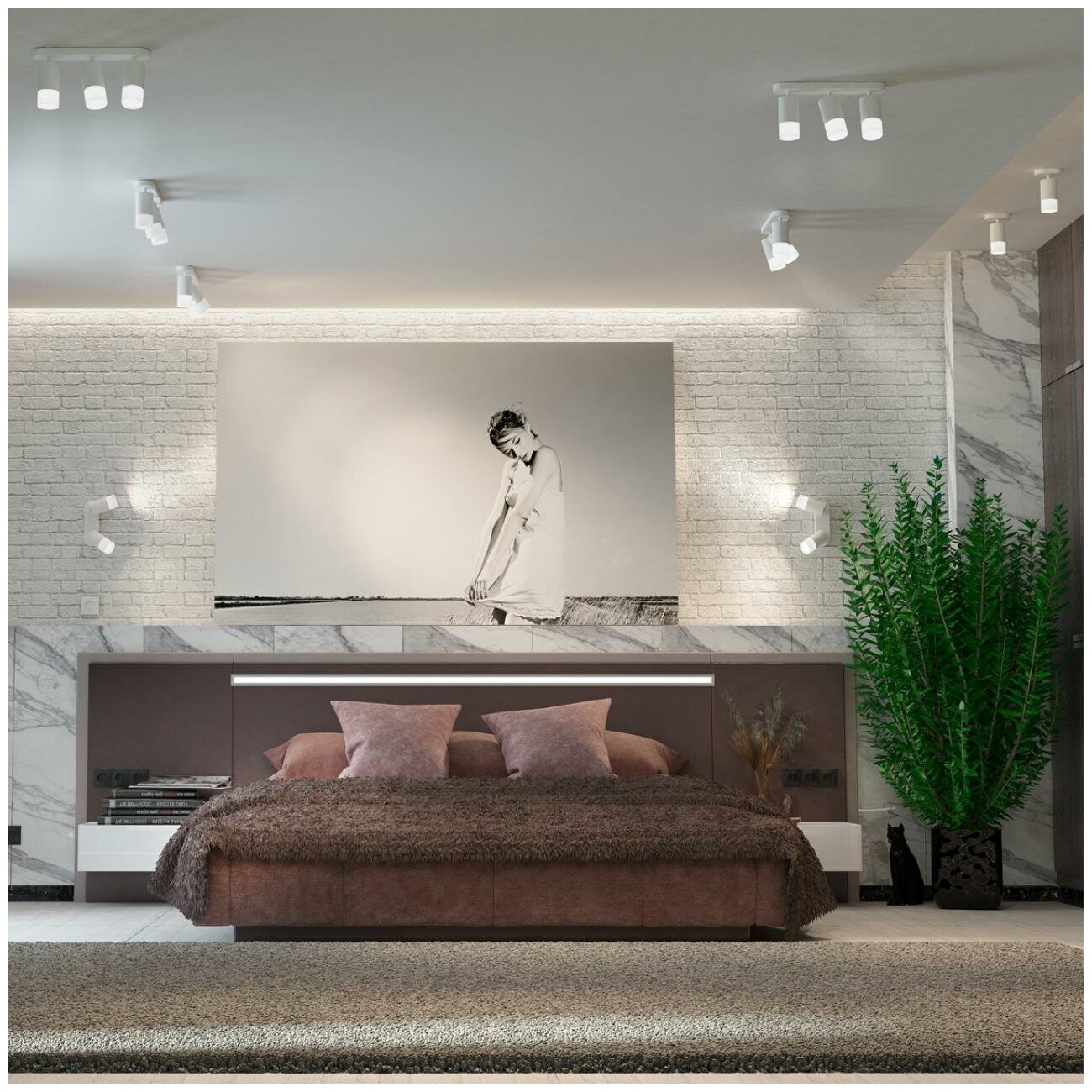 Игра света и тени может творить настоящие чудеса. И, конечно, споты подходят для творческих экспериментов. Например, направленные строго вверх, они создадут иллюзию световых колонн. Благодаря этим светильникам, можно зонировать пространство, выделяя отдельные участки комнаты или объекты. Единственное правило для таких экспериментов - в одном пространстве должны быть только однотипные светильники. В корпусе светильника есть акриловые части, поэтому его используют только с LED лампой максимальной мощности 9 Вт.