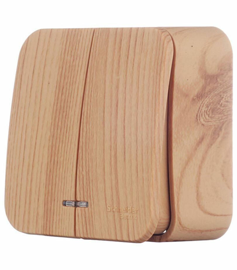 SE Blanca Ясень Выключатель 2-клавишный накладного монтажа с подсветкой с изолирующей пластиной 10А 250B Двухклавишный выключатель серии BLANCA под дерево "Ясень" с подсветкой, обладает современным и стильным дизайном, предназначен для управления и организации осветительной сети помещений. Подходит для жилых помещений, коммерческой недвижимости и объектов инфраструктуры. LED подсветка.