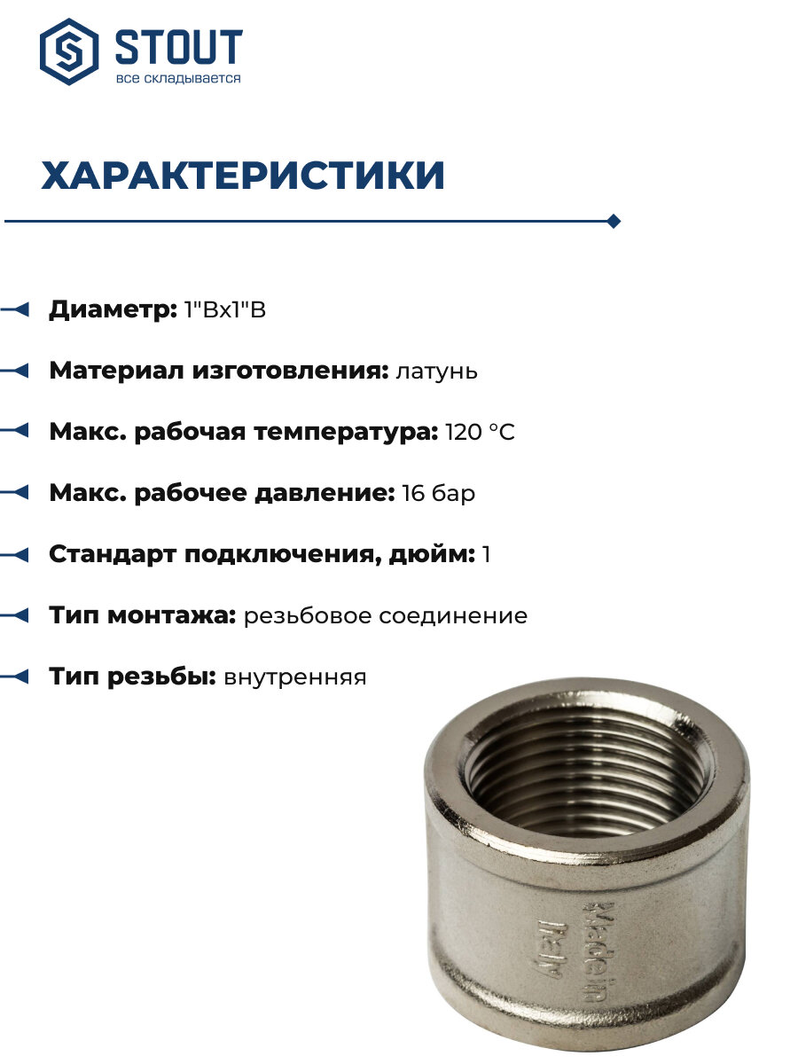 муфта STOUT ВР 1" латунь резьба (SFT-0006-000011)