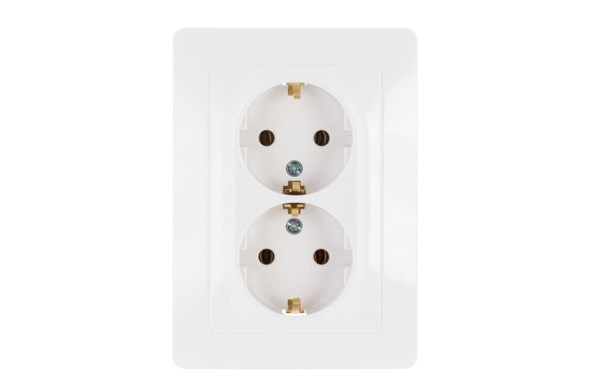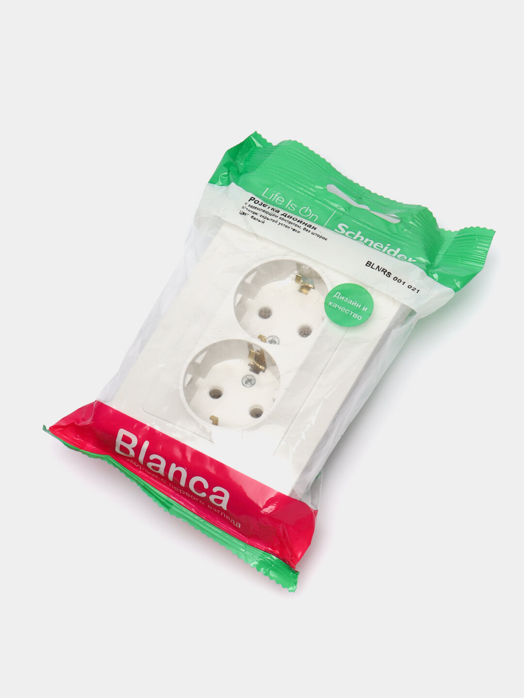 **Розетка двупостовая** серии BLANCA Systeme Electric (ранее Schneider Electric) позволит подключить два электроприбора. Изделие поставляется в сборе с рамкой и предназначено для скрытой установки в стену.