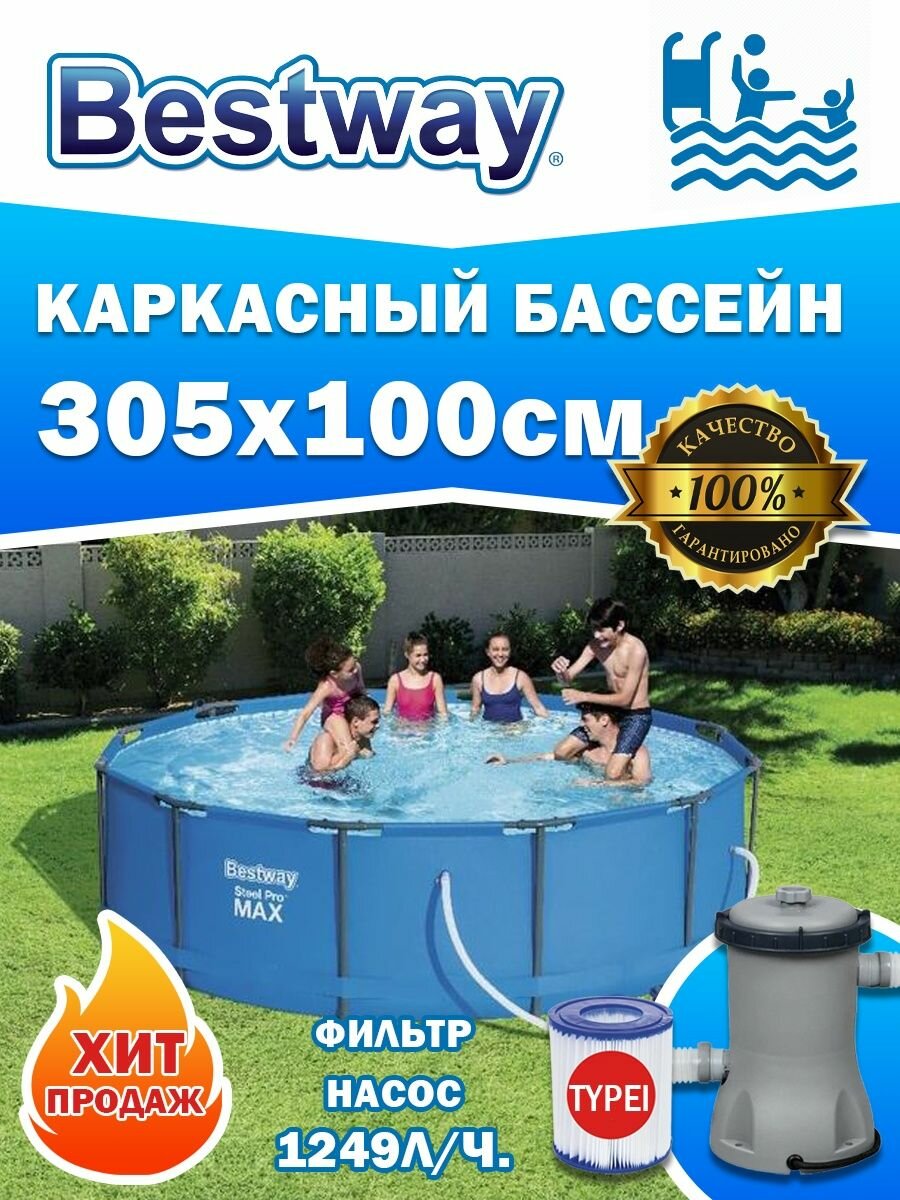 бассейн каркасный BESTWAY 305х305х76см 4678л фильтр-насос в комплекте (56408)