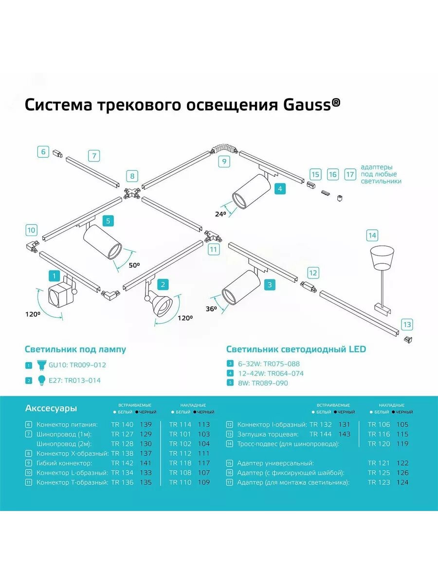 Светильники для трековых систем Gauss »