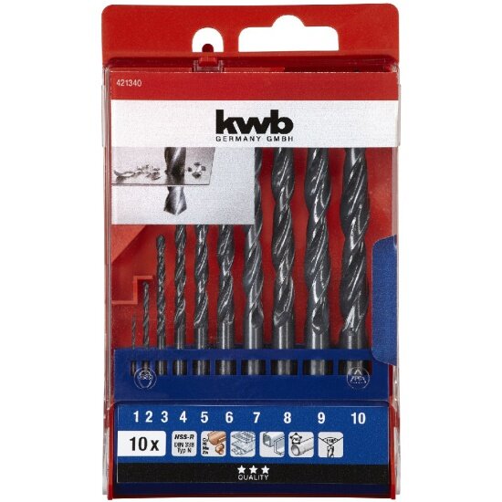 набор сверл по металлу KWB HSS 1-10мм DIN338 10предметов (421340)