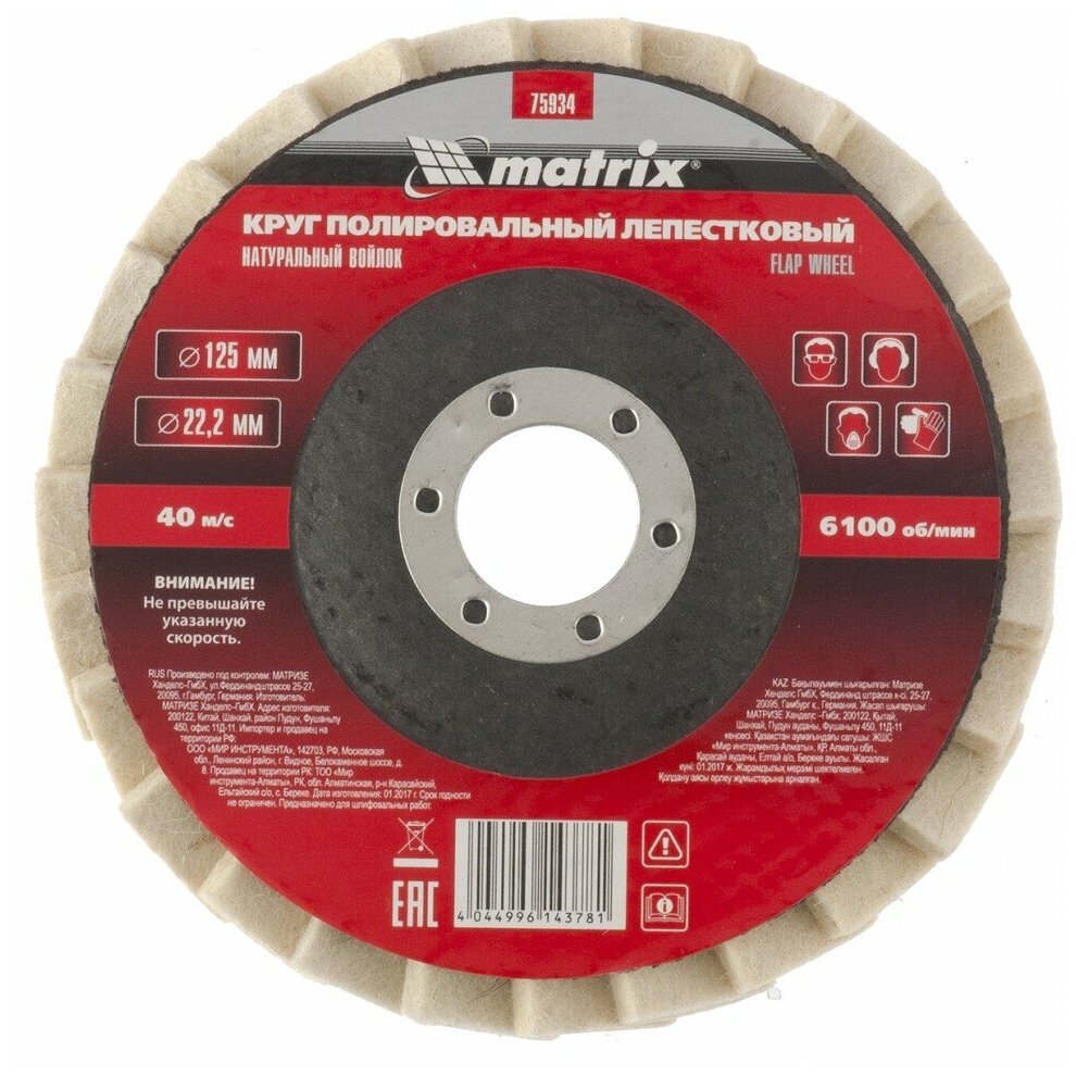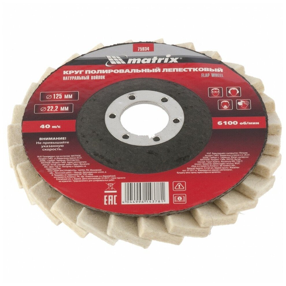 круг полировальный MATRIX лепестковый войлочный 125х22мм (75934)