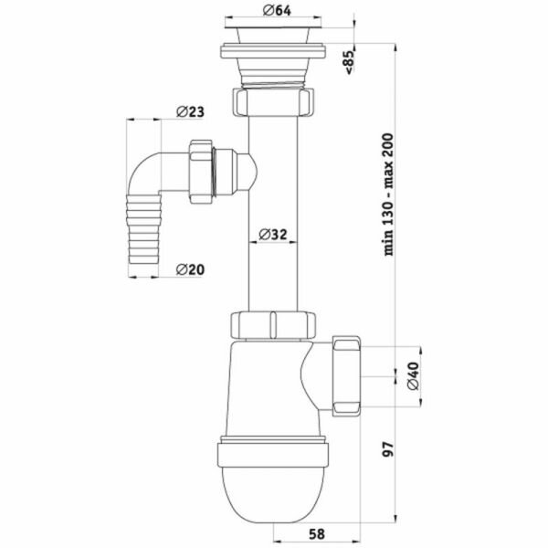 | Тип сифона | бутылочный |