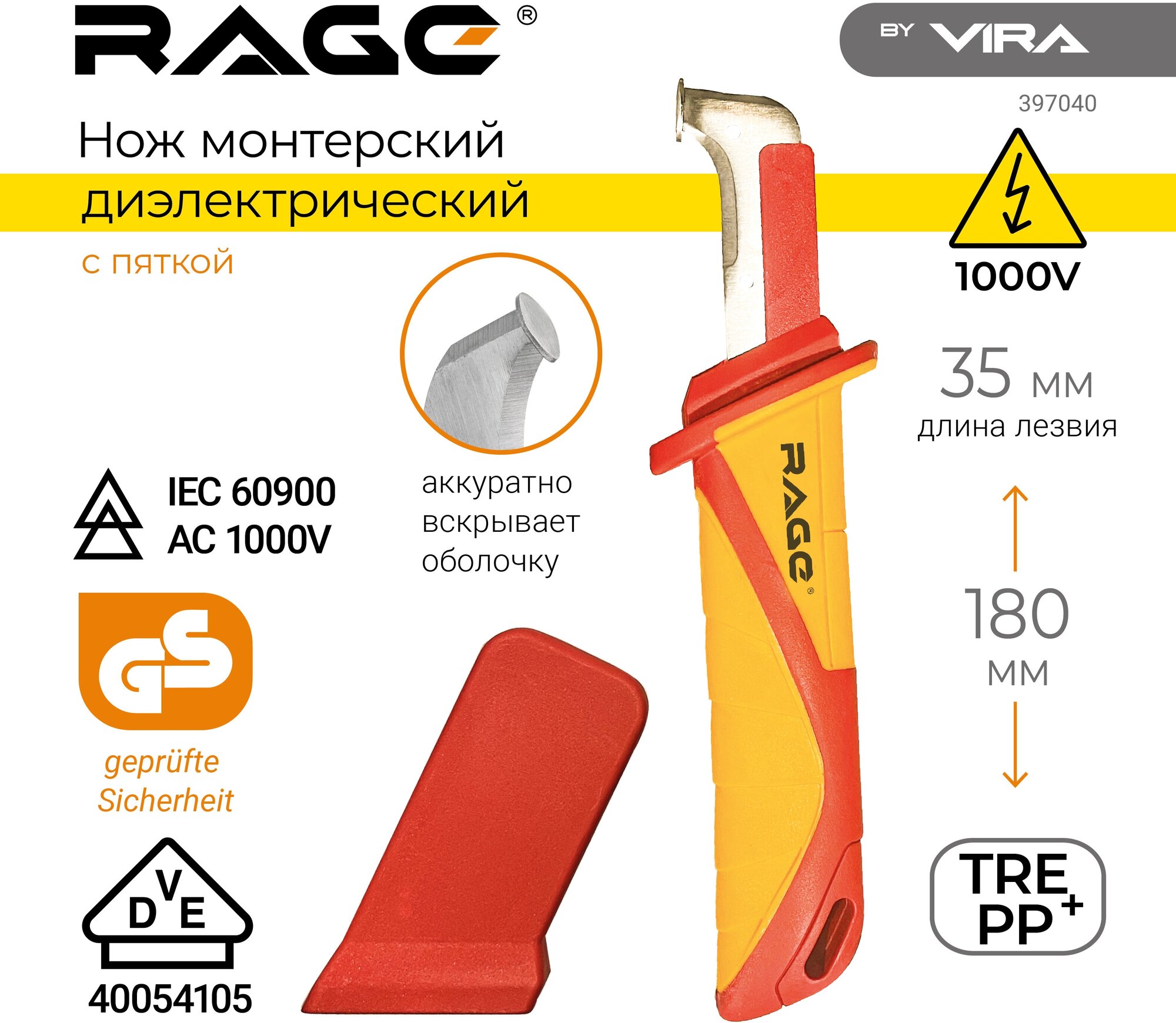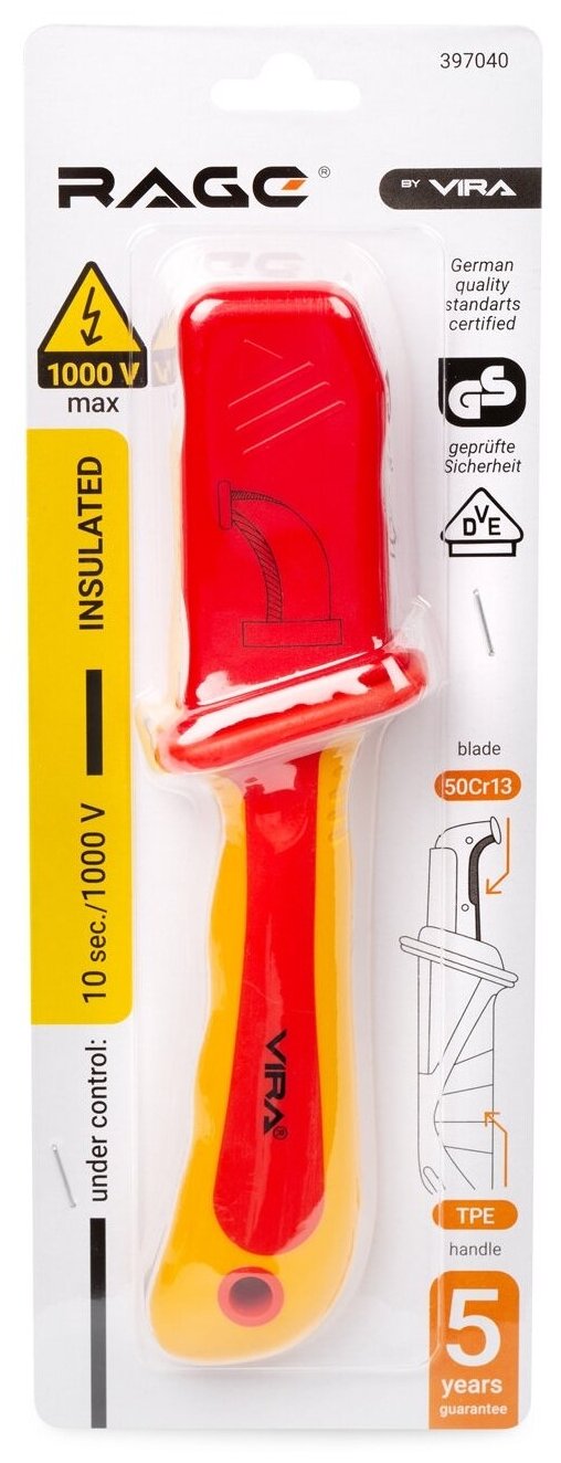 нож монтерский VIRA с пяткой диэлектрический (397040)