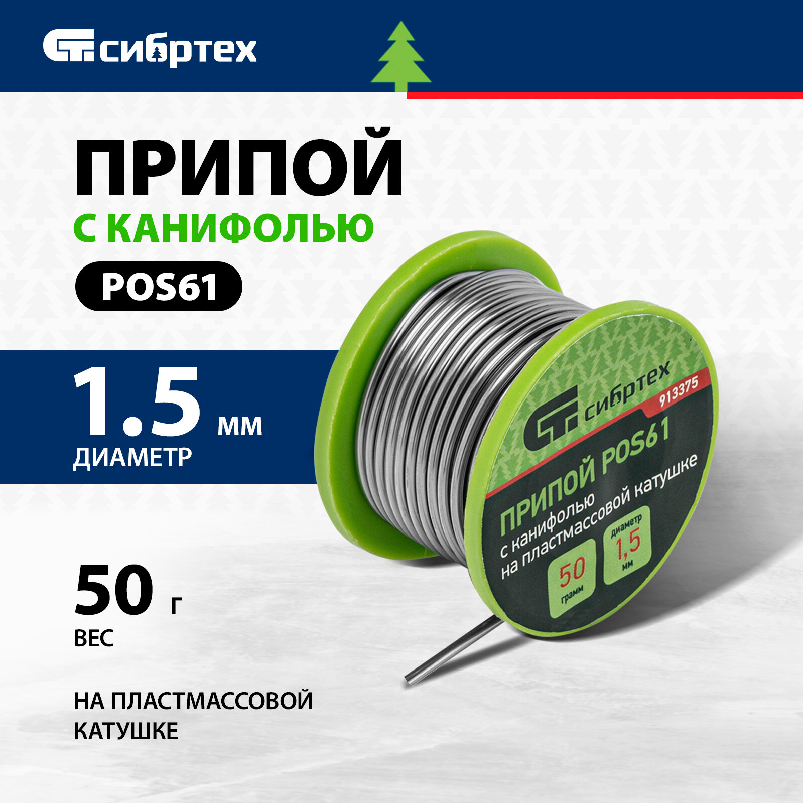 припой с канифолью СИБРТЕХ POS61 d15мм 50г (913375)