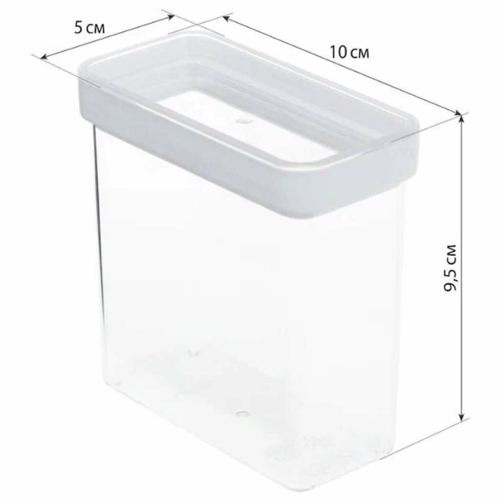 Ёмкости помогут организовать порядок на полке. Предназначены для хранения: специй, пряностей, соусов. Крышка выполнена по бикомпонентной технологии. Таким образом, внутренний край крышки сделан из эластомера. Вот почему банки герметичные, не пропускают влагу и запахи. Крышка позволит плотно закрыть ёмкость после использования, надолго сохраняя вкус и аромат специй. Изделия имеют прозрачный корпус и крышку. Поэтому всегда видно содержимое и его количество. Благодаря прямоугольной форме можно легко комбинировать заполнение пространства, как в горизонтальной, так и в вертикальной плоскости.