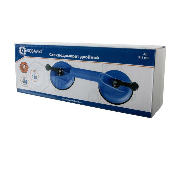 Двойной пластиковый стеклодомкрат, 50 кг ''Кобальт'' 911-086 оснащен двумя резиновыми присосками для надежного удержания стекла во время транспортировки. Корпус выполнен из прочного и легкого пластика. Приспособление позволяет удержать плиту весом до 50 кг.