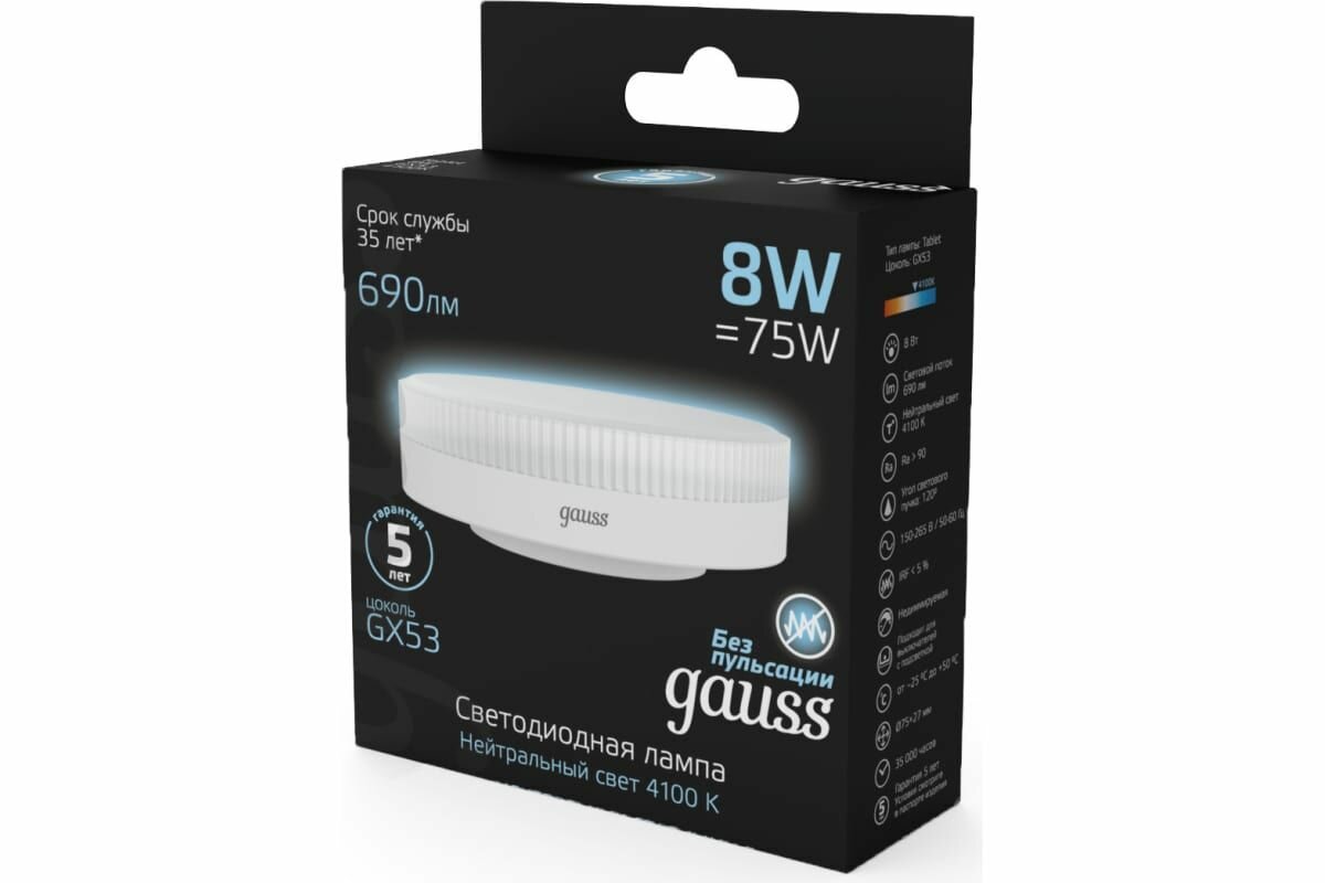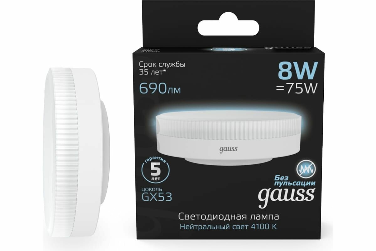 лампа светодиодная GAUSS 8Вт GX53 LED 690Лм 4100К рефлектор (108008208)