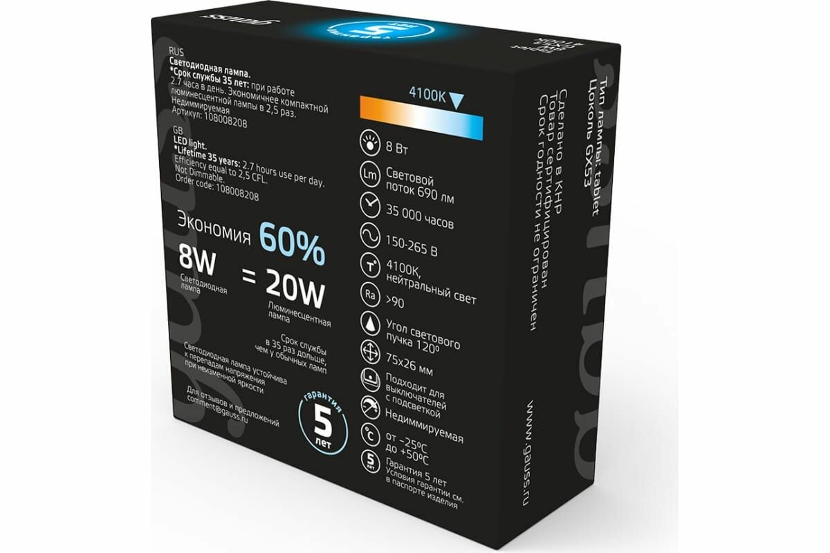 | Цоколь | GX53 |