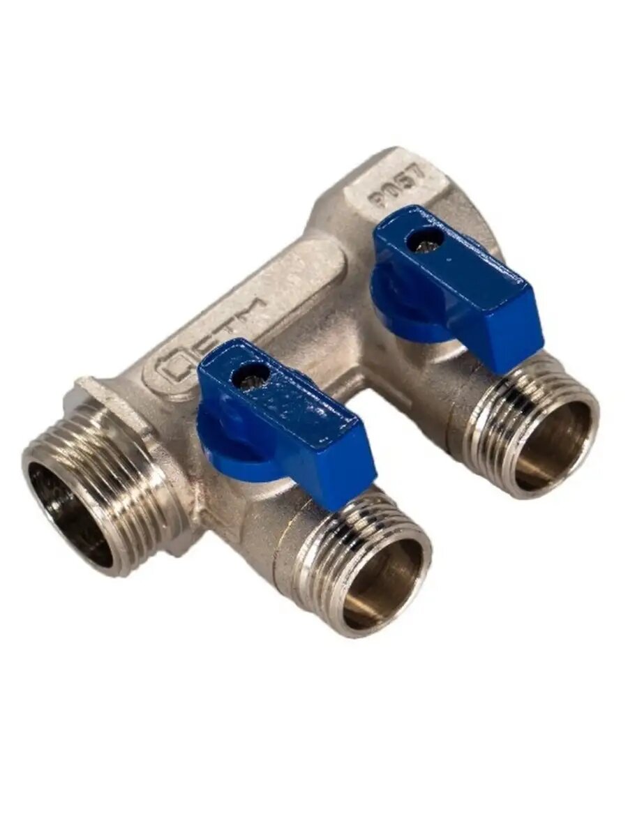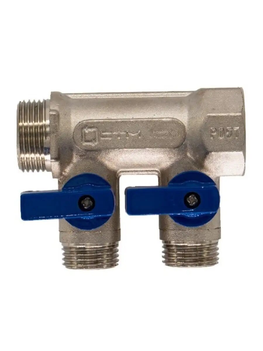 коллектор 2 выхода CTM 3/4" х 1/2" НР латунь с отсекающими кранами СТМ (C2MB3412)