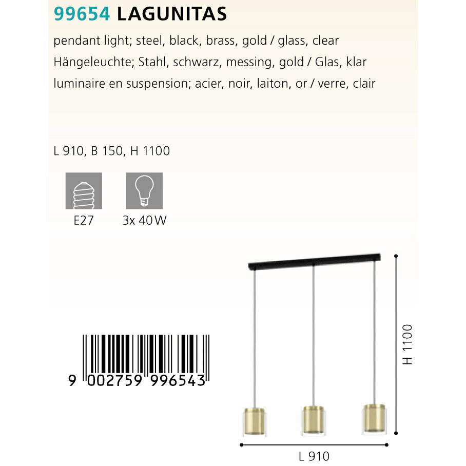 Сервис сравнения цен СкидкаГИД предлагает сравнить цены на товар «светильник подвесной EGLO Lagunitas 3x40Вт E27 сталь стекло золото (99654)»