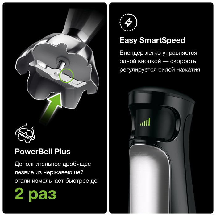 Блендер Braun MQ7035 оснащен погружной частью из нержавеющей стали, позволяющей работать с продуктами любой температуры. Ножи из нержавеющей стали справляются с нарезкой любых продуктов и гарантируют износоустойчивость лезвий.