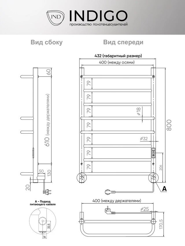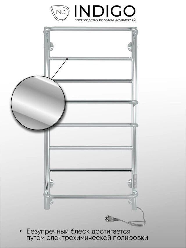 Полотенцесушитель электрический INDIGO Europe Lux в размере 800х400 (ВхШ) выбирают за его технологичность и универсальность. Модель оснащена терморегулятором нагрева, у которого три режима: 40, 45, 50 градусов и таймером на отключение через 2, 4, 6 часов. Универсальность изделия предусматривает подключение через прямой провод, который переставляется на нужную вам сторону или скрытое подключение без покупки дополнительного переходника. Длина провода 1,2 метра. Полотенцесушитель относится к энергоэффективным изделиям, потребляемая мощность в данном размере 85 Вт. Специальная технология нагревательного кабеля защищает полотенцесушитель от перегрева. В комплектации идут 4 телескопических держателя, комплект для монтажа и гарантийный паспорт. Полотенцесушитель INDIGO Europe Lux застрахован и имеет гарантию 1 год. Выбирая INDIGO вы получаете надежный продукт из нержавеющей стали с гарантией качества от российского производителя.