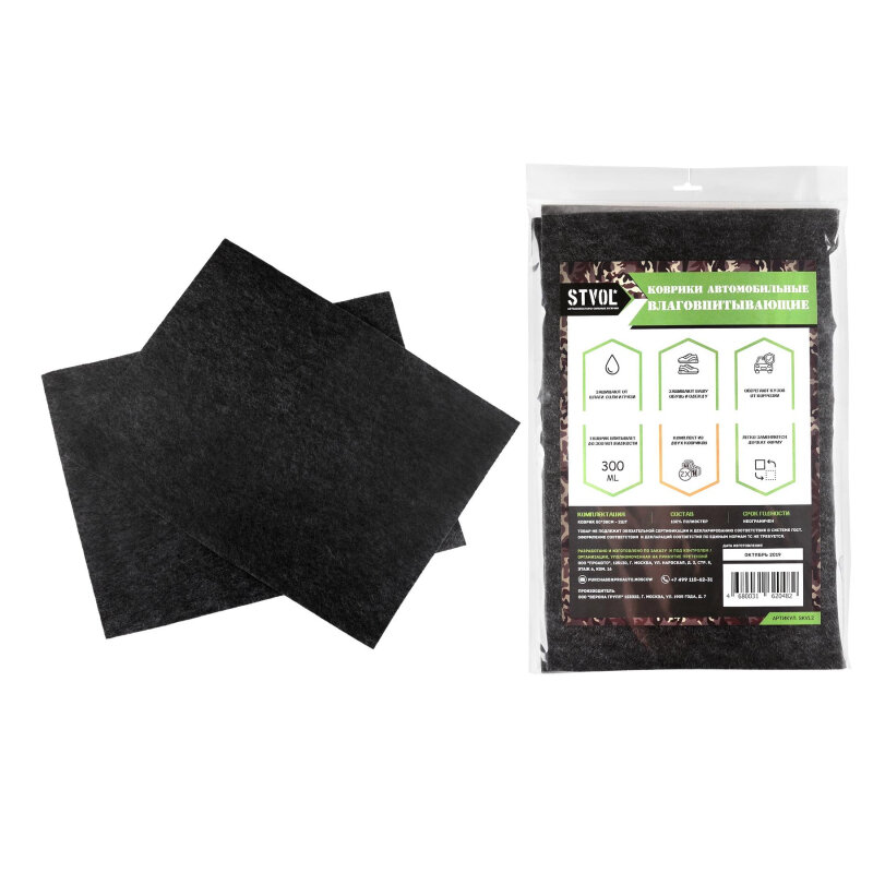 Влаговпитывающие автомобильные коврики STVOL кладутся под ноги вместо основного коврика или на него, обеспечивая чистоту и комфорт в автомобиле в любую погоду. Основное свойство коврика - впитывать влагу, химические реагенты, соли, остатки нефтепродуктов на подошвах обуви. Влаговпитывающий коврик STVOL способен впитать до 300ml жидкости. Размер: 50 х 38 см.
