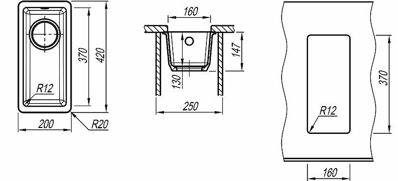 мойка FLORENTINA Вега 160 200х420х217мм жасмин (22.300.00160.201)