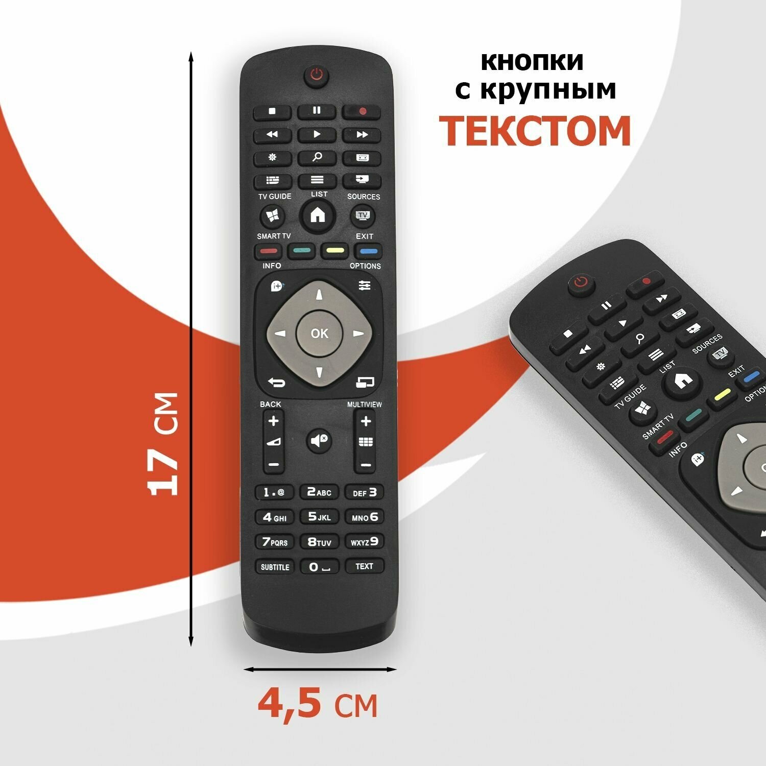 Универсальный пульт дистанционного управления REXANT для телевизора PHILIPS отличается простотой в использовании и подходит для большинства современных моделей телевизоров этого бренда. Пульт поддерживает все необходимые функции, обеспечивающие максимально полное и удобное управление телевизором. Имеет низкое энергопотребление, удобен и прост в настройке. Идеально подходит для таких моделей, как: 2422 5490 01833 2422 5490 01834 2422 5490 01911 RC0301/01-47 RC0770 RC1112516/00 RC1152605/01 RC115300101 RC1153053-00 RC1205B/30063555 RC1683701 RC1683702/01 RC1683801/01 RC19002_B RC19036002 RC19039001 RC19039001-01 RC1904 RC1904/001 RC19042001 RC19042003/01 RC19042004 RC19042008/01 RC19042009/01 RC19042011 RC19042011/01 RC19042013 RC19042018/01 RC19137008/01 RC19335001 RC19335003/01 RC19335003/120 RC19335004/01 RC19335009/01 RC19335019/01 RC19335020/01 RC19335021/01 RC19335023/01H RC19335029-01 RC2023601 RC2023617/01 RC2030 RC2031 RC2033601/01 RC2034301-01 RC2034302-01 RC2034305/01B RC2034312/01 RC2048 RC2080 RC21430606//01 RC242254902308 RC242254902314 RC242254902344 RC242254902362 RC242254902441 RC242254990274 RC242254990416 RC242254990467 RC242254990477 RC242254990477W RC25109/01 RC2512 RC2521 RC2525 RC2529 RC2529/01 RC2533 RC2541 RC2543 RC2563 RC2575 RC2582/01 RC2683203-01 RC2683204-01 RC2683204/01 RC2835/01 RC313923823419 RC4344-01H RC4422/01 RC520 RC5536 RC6805 RC7502 RC7502 RC7507 RC7533 RC7535 RC7599 RC7802 RC7805 RC7806 RC7807 RC7808 RC7812 RC7847 RC7940 RC7952 RC7953 RC7954 RC7959 RC7962 RC7974 RC8205 RC8922 RC8925 RC8927 RC996590000449 RC996590009443 RC996590009748 YKF230-028 Размер пульта: 17х4.5х2 см Тип питания: батарейки 2 х ААА (в комплект не входят)