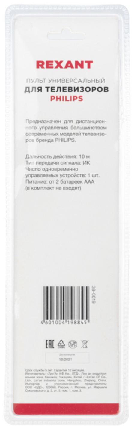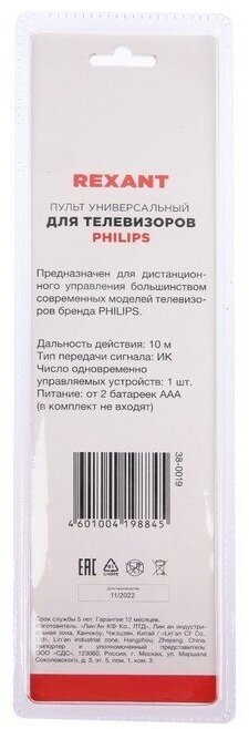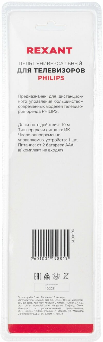 пульт Д/У универсальный REXANT для телевизора PHILIPS (38-0019)
