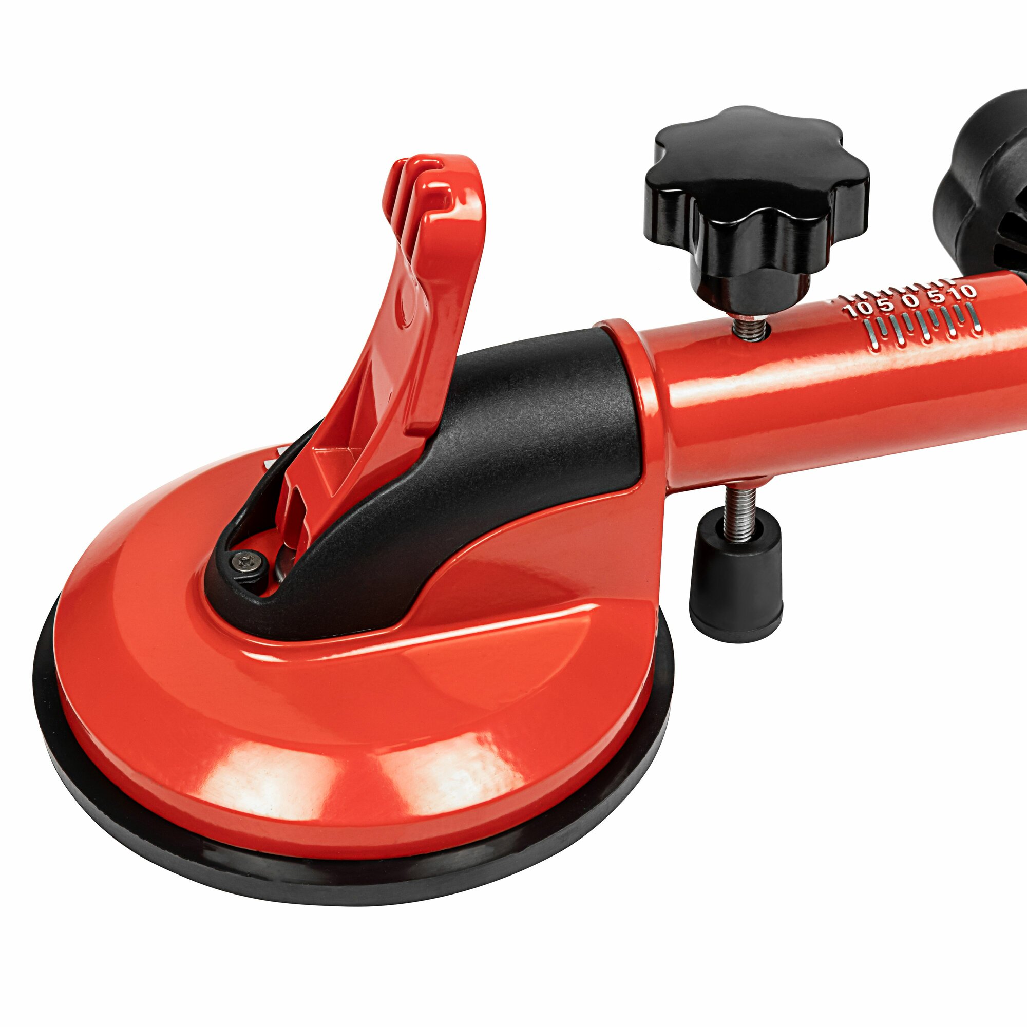 Система фиксации углов DLT ? это струбцина с двумя присосками с ходом поворотного механизма 270?. Предназначен инструмент для фиксации внутренних и внешних углов при монтаже изделий из керамической плитки и натурального камня. Регулировка выполняется винтовыми механизмами. Позволяет упростить и ускорить процесс формирования угла 90?. Каждая присоска снабжена алюминиевым фиксатором для создания разряжения (вакуума) под мембраной и способна надежно закрепляться на плите с гладкой и шероховатой поверхностью (с сильным рельефом НЕ работает). Работа с устройством проста и понятна интуитивно. Ход наклонного механизма работает в диапазоне 270?. Важной особенностью данного инструмента является алюминиевый корпус. ВАЖНО! Устройство не предназначено для подъема и переноски.