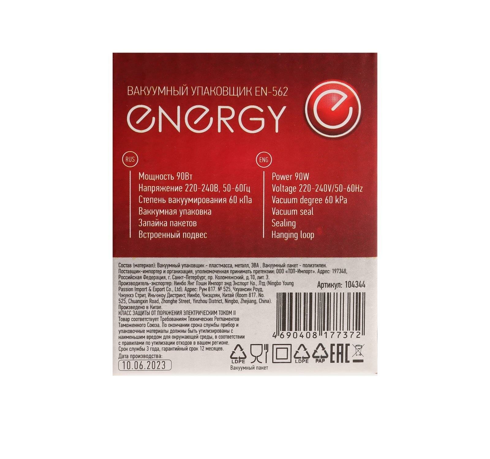 упаковщик вакуумный ENERGY EN-562 90Вт черный