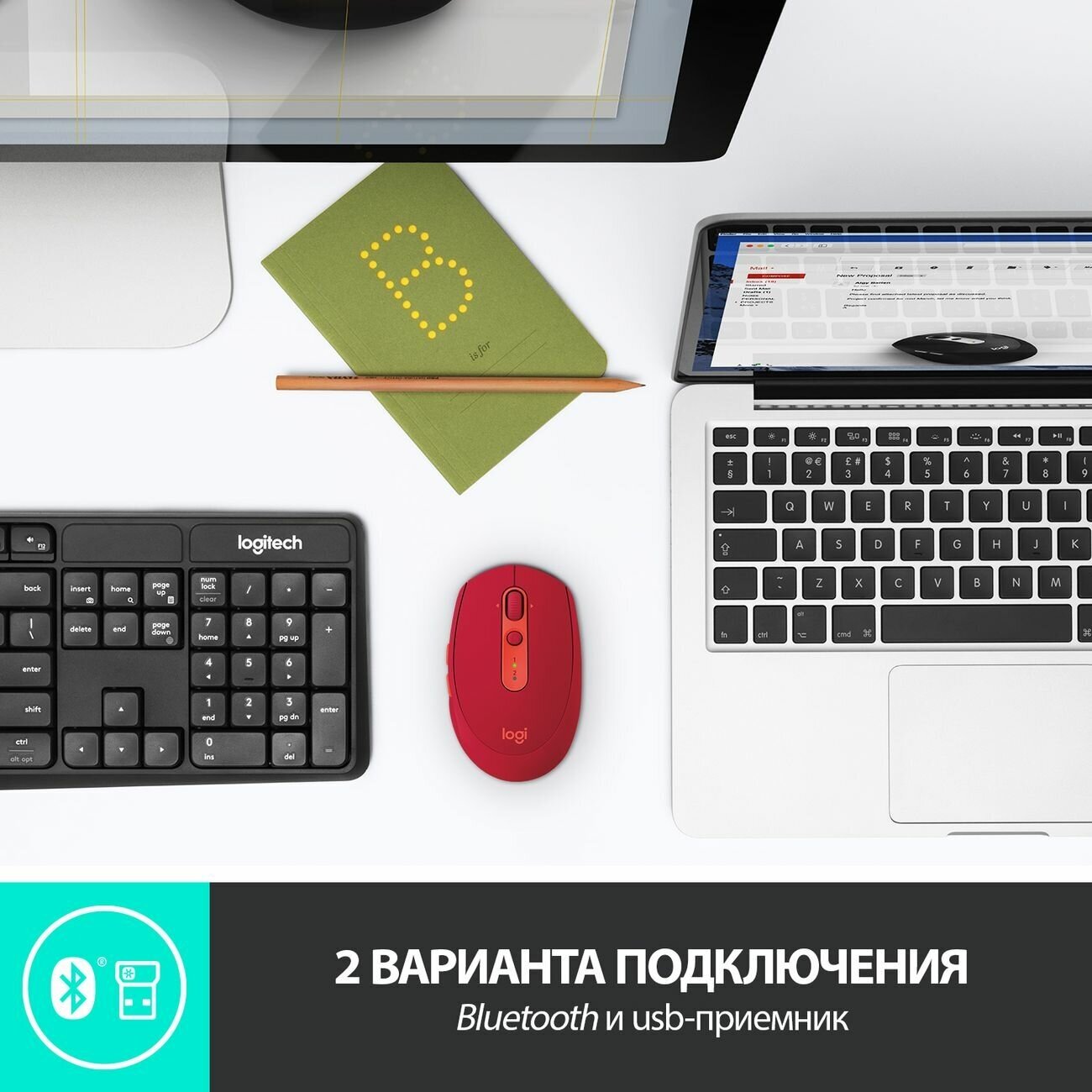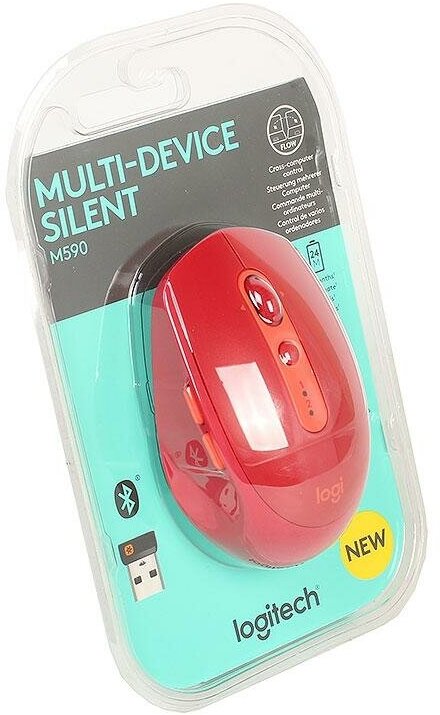 Мышь Logitech M590 Multi-Device Silent (красный) Wireless Mouse M590 Silent Red