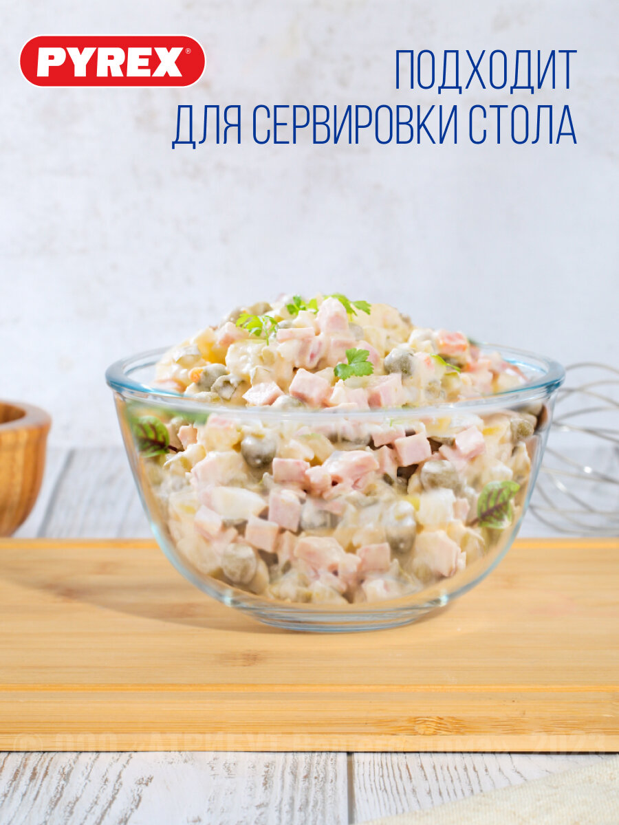 Миска ''Pyrex Smart Cooking'' - незаменимый помощник на кухне. Миска ''Pyrex'' многофункциональное решение, ведь она подойдет не только для смешивания ингредиентов при приготовлении разнообразных блюд, но также послужит великолепным салатником или вазой для фруктов. Закаленное боросиликатное стекло обладает увеличенной по сравнению с другими видами стекла ударопрочностью, не боится царапин, которые могут возникать при использовании венчика и других металлических аксессуаров, и является одним из наиболее безопасных и гигиеничных материалов. Миску ''Pyrex Smart Cooking'' можно также использовать в качестве формы для выпечки, поскольку стекло ''Pyrex'' выдерживает резкий перепад температур до 220°С. Посуда ''Pyrex'' изготавливается во Франции в соответствии с европейскими стандартами качества.