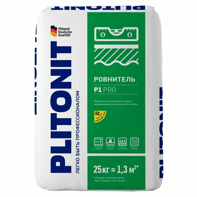 выравниватель для пола Плитонит ПРО Р1 25кг арт.Плитонит Р1-25