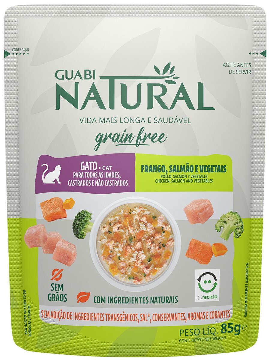 Guabi Natural Natural Cat Влажный корм беззерновой для взрослых кошек с курицей лососем и овощами 85 г (пауч)