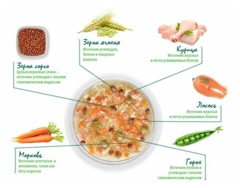 Дополнительный консервированный влажный корм для собак.Сухие и влажные корма Guabi Natural отлично сочетаются и дополняют друг друга, обеспечивая животному качественный рацион. 100% сбалансированное натуральное питание, приготовленное на пару. Отличное дополнение к сухим кормам Guabi NaturalКуриное мясо - качественный источник животного белка, важная составляющая рациона для собак; Лосось – источник легко усваиваемых белков и Омега 3, а органическая морковь в составе является прекрасным источником клетчатки, витаминов и минералов, оказывает положительный эффект на работу ЖКТЦельный горох, играет важную роль во многих процессах организма (в частности, он регулирует иммунный ответ). Растворимая клетчатка зелёного горошка помогает поддерживать моторику кишечника