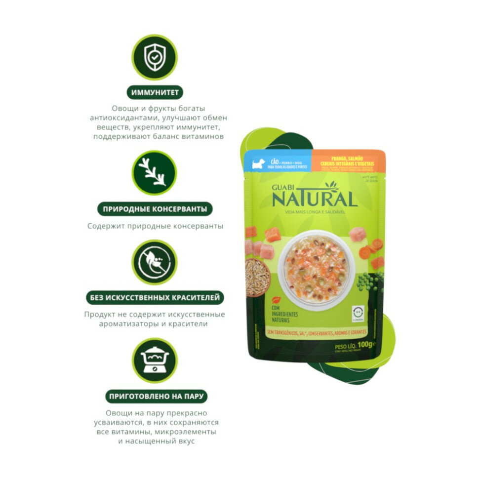 Guabi Natural Natural Dog Влажный корм беззерновой для собак с курицей лососем и овощами 100 г (пауч)