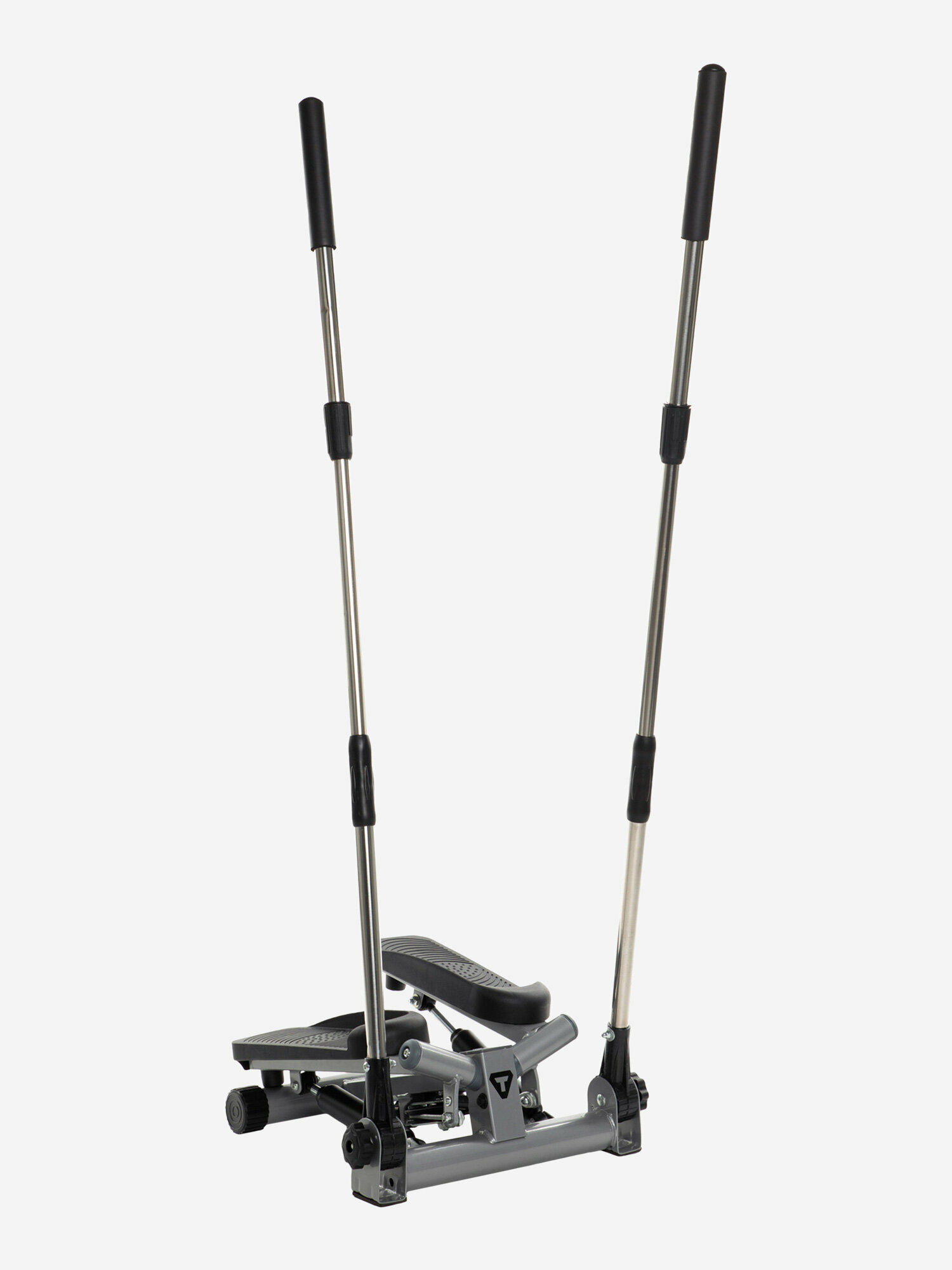 Степпер с функцией скандинавской ходьбы, предназначенный для проработки икроножных, ягодичных мышц и мышц бедра. Благодаря движущимся поручням эффективность тренировки повышается в 1.5 раза по сравнению с обычной ходьбой: начинают работать мышцы плечевого пояса и рук. При необходимости поручни можно снять. Тренажер показывает время тренировки, количество шагов, ритм, сожженные калории, общую пройденную дистанцию. Детали: регулировка поручней по высоте, регулируемая нагрузка на руки, максимальный вес пользователя 100 кг.