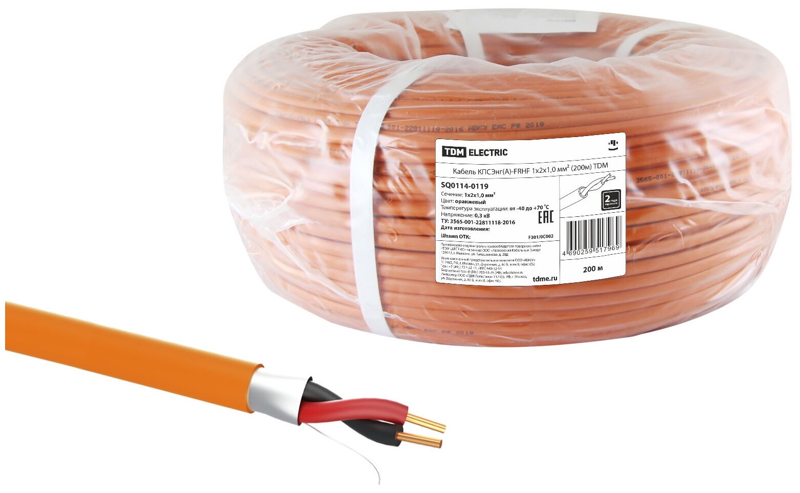 **Кабель Tdm Electric КПСЭнг(А)-FRHF** предназначен для установки элементов системы пожарной сигнализации: датчиков, извещателей, контроллеров, пультов, табло и т. д. При пожаре кабель сохраняет работоспособность жизненно важных элементов системы. Выдерживает повышение температуры до 180°С.