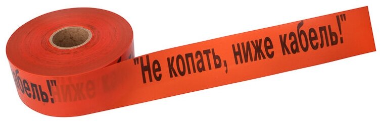 **Лента сигнальная «Не копать, ниже кабель»** представляет собой универсальное средство, при помощи которого можно оперативно обозначить места пролегания трубопроводных систем разного назначения при выполнении земляных работ. Изготавливается из полиэтилена, за счет чего изделие отличается хорошей прочностью и износостойкостью. Позволяет привлечь внимание окружающих людей о проведении работ и предупреждает об осторожности. Кроме того, сигнальная лента помогает рабочим быстрее сориентироваться на местности, где проводятся ремонтные работы.