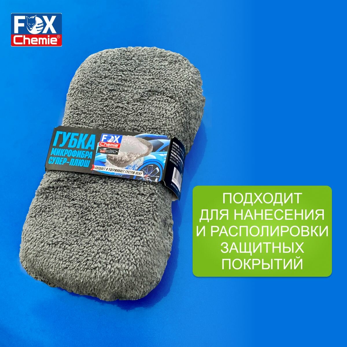 **Губка Fox Chemie Супер-плюш** предназначена для мойки автомобиля. Изготовлена из полиуретана с покрытием из плюшевой микрофибры. Отличается высокой впитываемостью, хорошо вспенивает моющие составы и удерживает пену. Эффективно очищает разные поверхности автомобиля. Удобна для уборки кузова, салона.