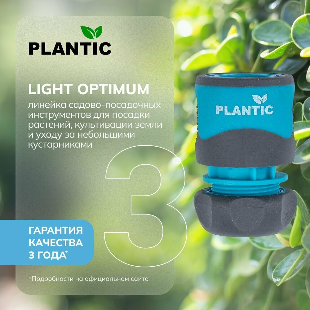 **Коннектор Plantic Light** используется для организации системы полива на дачном и приусадебном участке. Позволяет выполнить надежное и герметичное соединение со шлангом. Изготовлен из ABS-пластика, не подверженного деформации и разрушению при частом контакте с влагой.