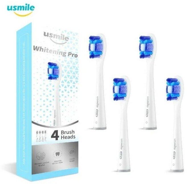 Сменные головки зубных щеток USMILE Whitening Pro помогут вам добиться наилучших результатов в гигиене полости рта. Регулярная смена насадок гарантирует, что вы всегда будете чистить зубы так же эффективно, как и новой щеткой. Характеристики: легкая замена, удобство и простота в использовании. Как использовать: Установите сменную головку на зубную щетку и нажмите, чтобы зафиксировать ее. Следуйте инструкции по эксплуатации, входящей в комплект. Основные характеристики: совместимы со щетками USMILE Y1S, U3, P1 и P4, очищает даже труднодоступные места, отбеливает зубы, закругленные щетинки, головка удаляет пигментные пятна, в наборе 4 шт.