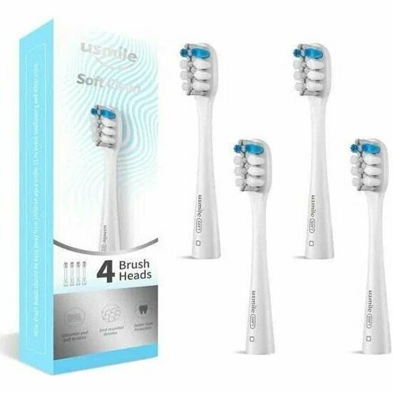 Сменные головки зубных щеток USMILE Soft Clean помогут вам добиться наилучших результатов в гигиене полости рта. Регулярная смена насадок гарантирует, что вы всегда будете чистить зубы так же эффективно, как и новой щеткой. Характеристики: легкая замена, удобство и простота в использовании. Как использовать: Установите сменную головку на зубную щетку и нажмите, чтобы зафиксировать ее. Следуйте инструкции по эксплуатации, входящей в комплект. Основные характеристики: совместимы со щетками USMILE Y1S, U3, P1 и P4, ультратонкая щетина 0,127 мм, высококачественное волокно DuPont, головки подходят для чувствительных зубов, в наборе 4 шт.