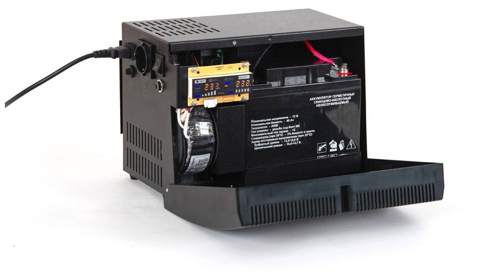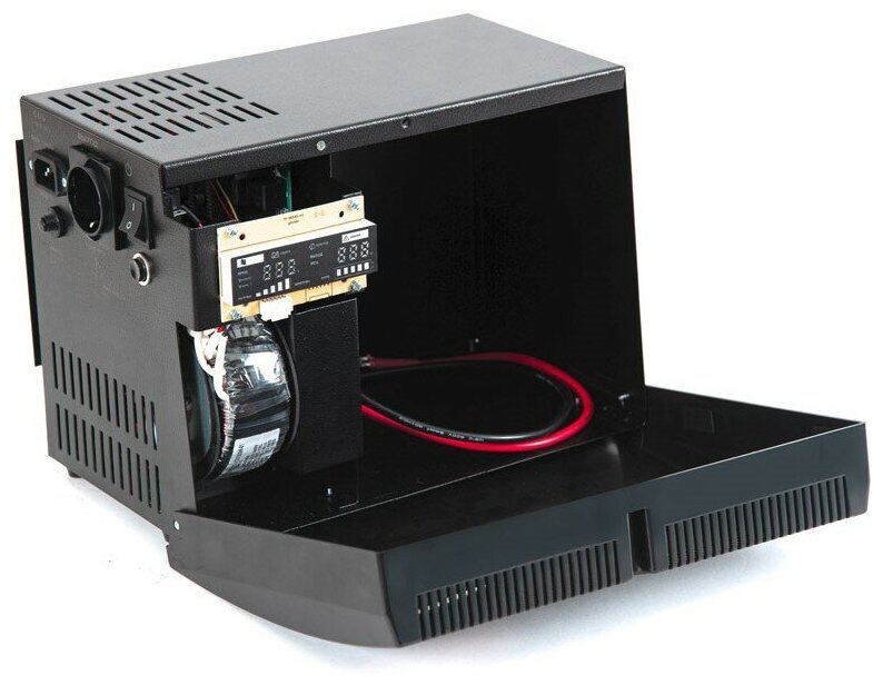 220 В, 500 ВА. Чистый синус. Диапазон входного напряжения — 140...275 В. Точность выходного напряжения в режиме «Резерв» — 3%. Количество подключаемых аккумуляторов — 1 шт. Максимальный ток заряда аккумулятора – 10 А. Автоматический переход на резервное питание от АКБ при пропадании сети. Металлопластиковый корпус рассчитан под установку АКБ до 40 Ач или подключение внешнего АКБ до 200 Ач. Экран индикации. Защита АКБ от глубокого разряда, защита от перегрузки, настенная или настольная установка. АКБ в состав комплекта не входит.Новые источники бесперебойного питания TEPLOCOM при наличии сети стабилизируют напряжение и защищают оборудование, а при отсутствии сети обеспечивают резервную работу отопительного оборудования.TEPLOCOM-500+:выравнивает напряжение сети;защищает от скачков напряжения;продлевает срок службы оборудования;обеспечивает резервное питание.Сферы применения:для фазонезависимых котлов;для насосов отопления;для котельной автоматики.