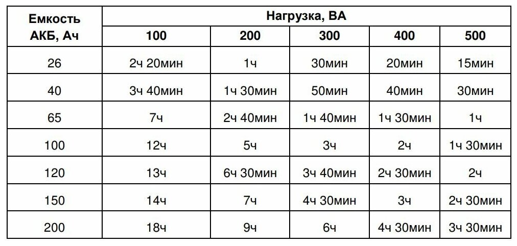 | Время работы от АБ при нагрузке 100% | 60.000 |