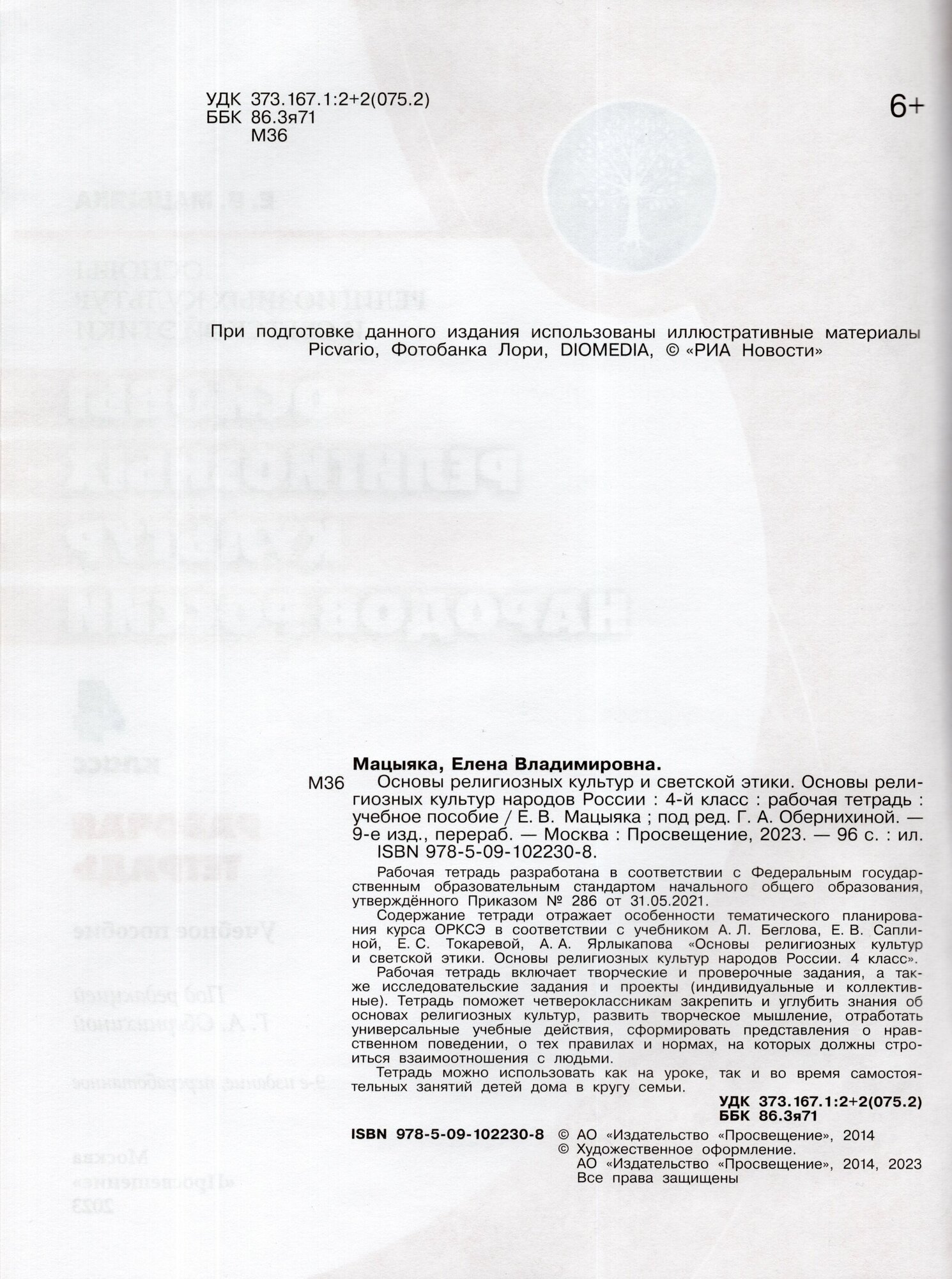 Основы религиозных культур и светской этики. Основы религиозных культур народов России. 4 класс. Рабочая тетрадь (Мацыяка Е.В.); Просвещение, 2023