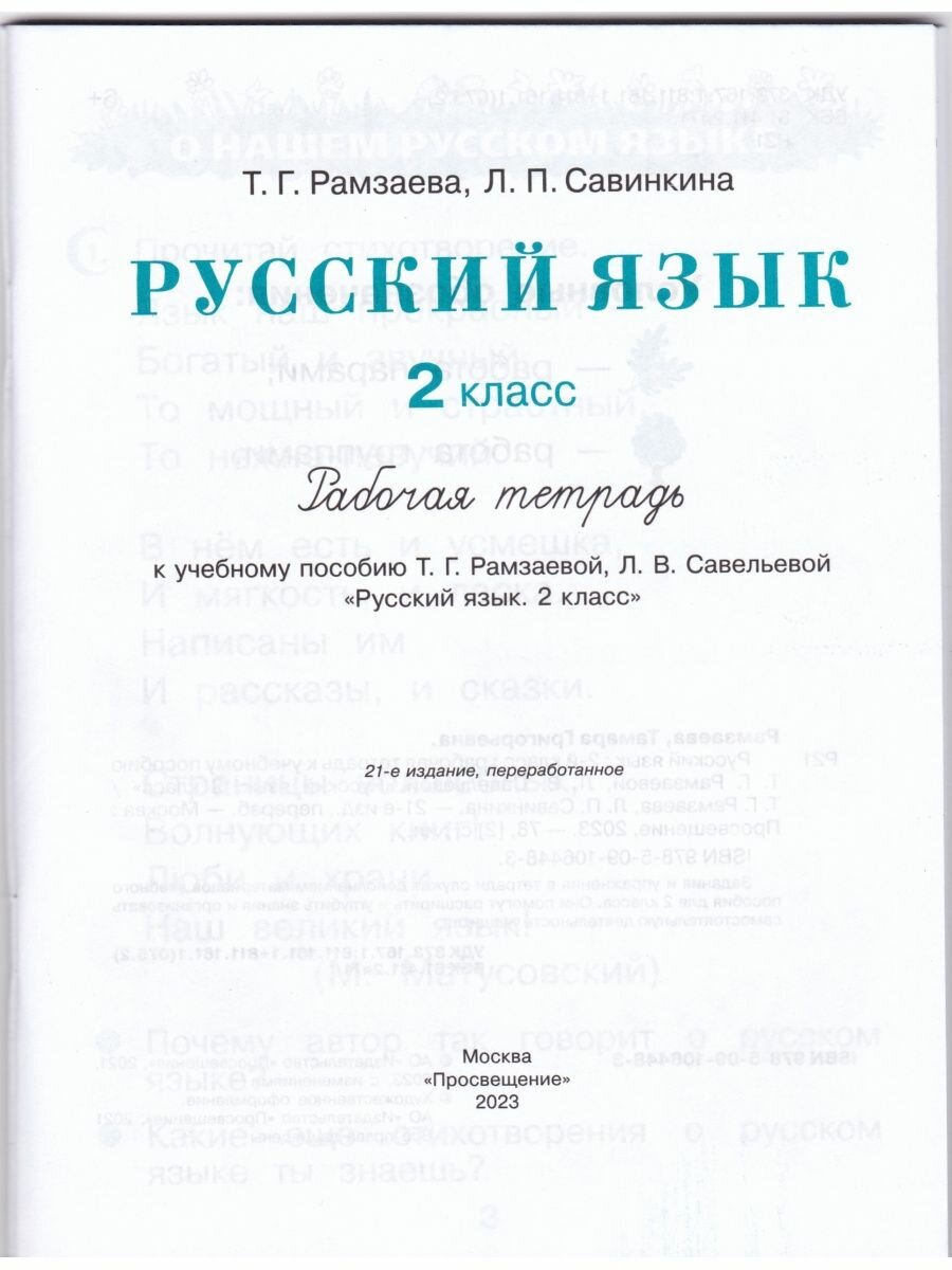 Русский язык. 2 класс. Рабочая тетрадь (Рамзаева Тамара Григорьевна, Савинкина Людмила Павловна); Просвещение, 2023