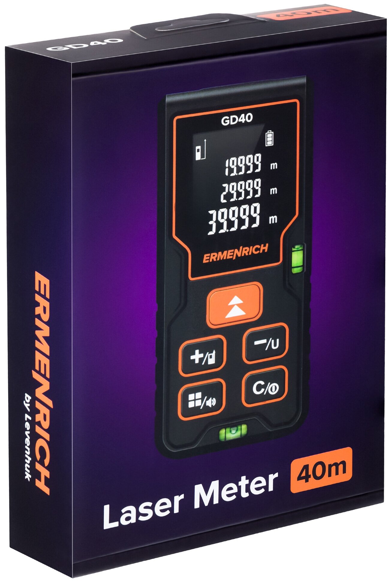 Ermenrich – лазерная рулетка, которая найдет самое широкое применение при измерении линейных размеров, площадей и объемов помещений, зданий и сооружений. Ее возможности пригодятся при монтаже сборных конструкций, подгонке деталей большого размера и проч. Рулетка осуществляет измерения в ручном и автоматическом режимах. Также устройство производит расчеты необходимых параметров на основе косвенных данных измерений функция «Пифагор», что облегчает работу в стесненных условиях и помещениях сложной формы.